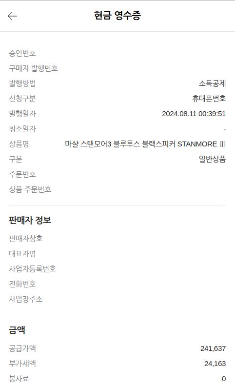 • 네이버페이 머니로 결제한 상품에 대해서만 현금영수증 발급이 가능합니다.